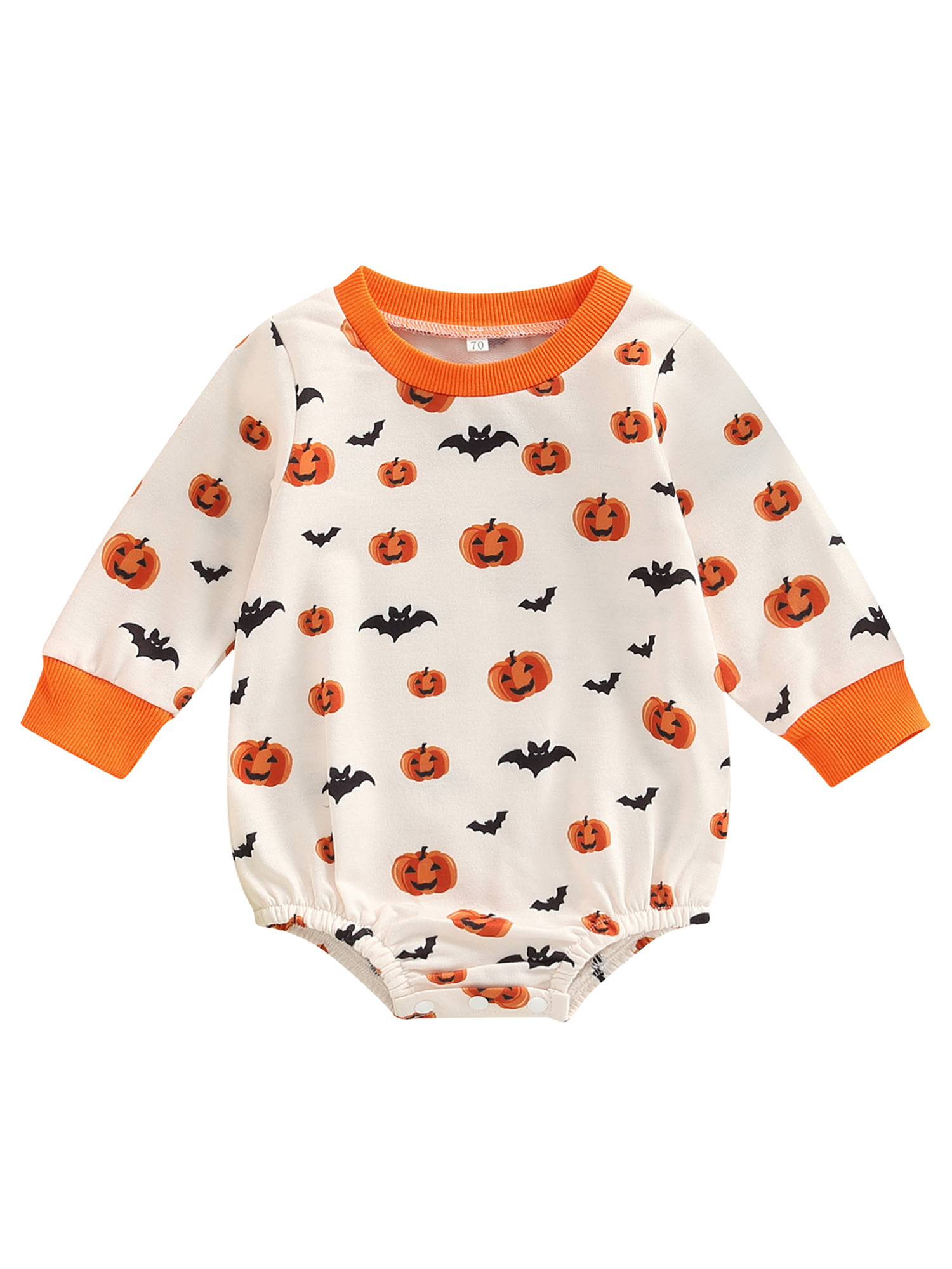 Halloween Baby Romper Long Sleeve Round Neck Pumpkin Bat Pattern Contrast Color One Piece Jumpsuit Walmart Com