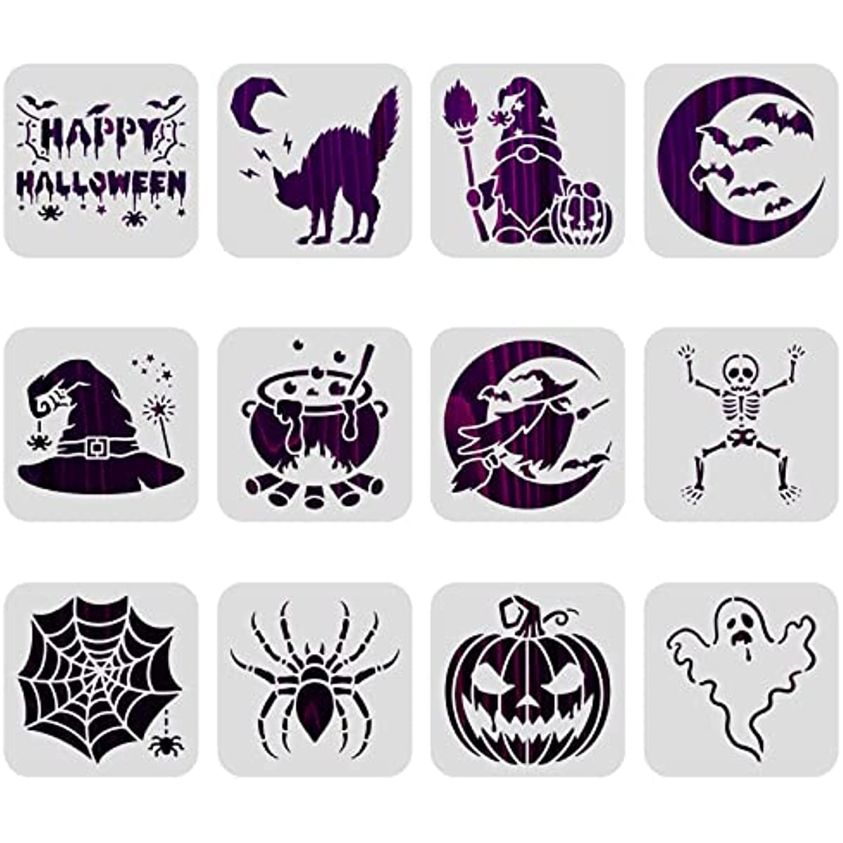 12pcs Halloween Themed Drawing Stencils 6x6 Happy Halloween Pumpkin Bat Ghost Template For Scrabooking Card Making Wall Floor Art Walmart Com